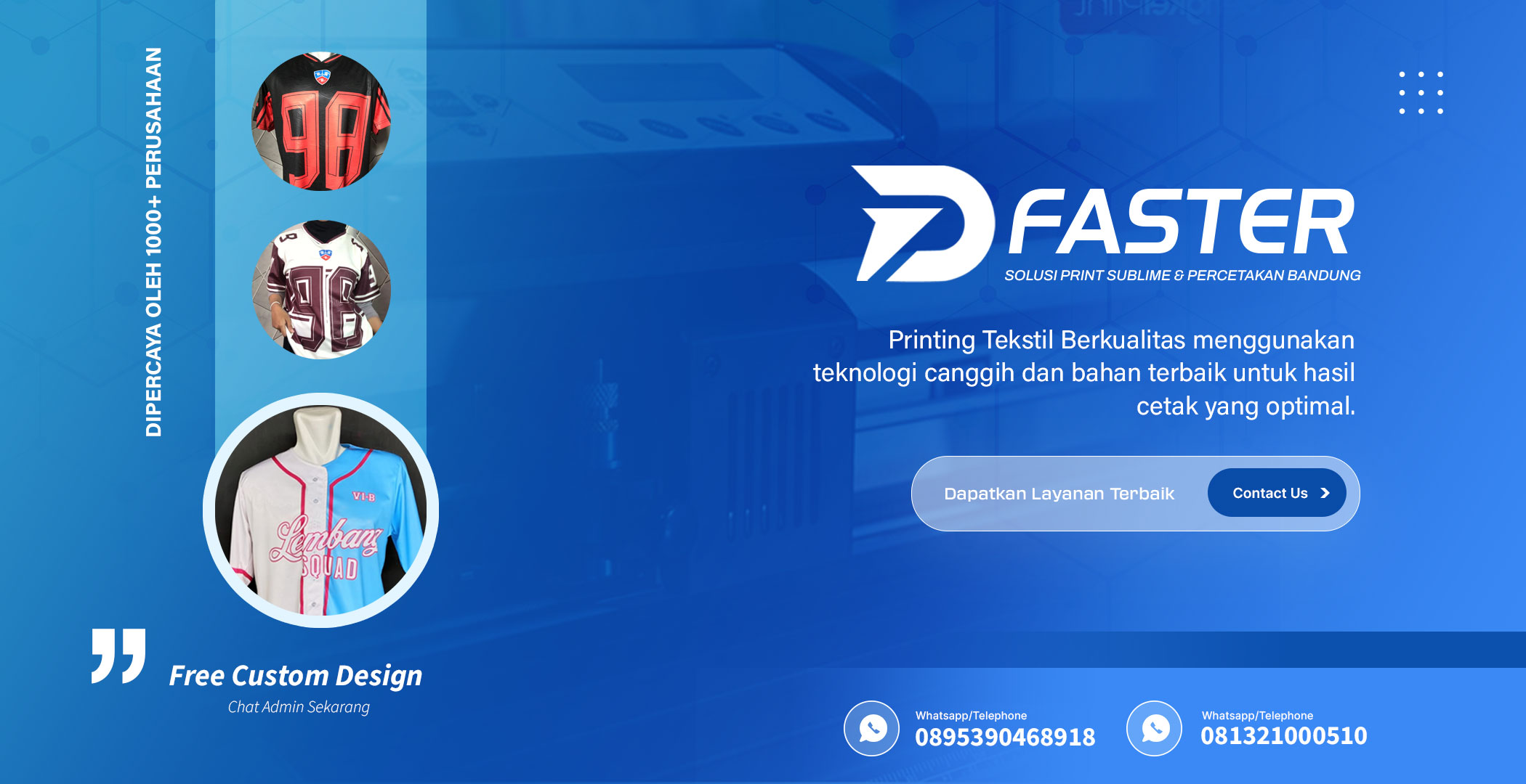CV Kreasi Faster Indonesia adalah penyedia jasa cetak berkualitas di Bandung. Kami melayani print sublime, DTF, offset, laser cut, dan banner dengan harga bersaing dan layanan profesional