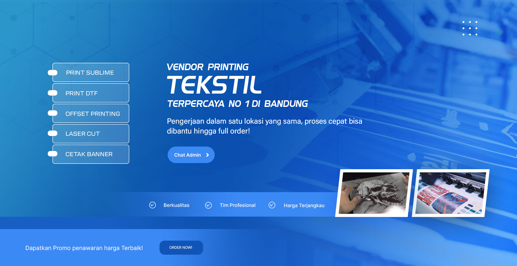 Kami berkomitmen untuk mendukung industri fashion dengan menjadi mitra cetak terpercaya bagi berbagai sektor, termasuk konveksi, butik, reseller fashion, garment, instansi, serta pelaku usaha lainnya. Dengan layanan yang fleksibel dan berkualitas tinggi, kami siap berkolaborasi untuk memenuhi kebutuhan cetak Anda.